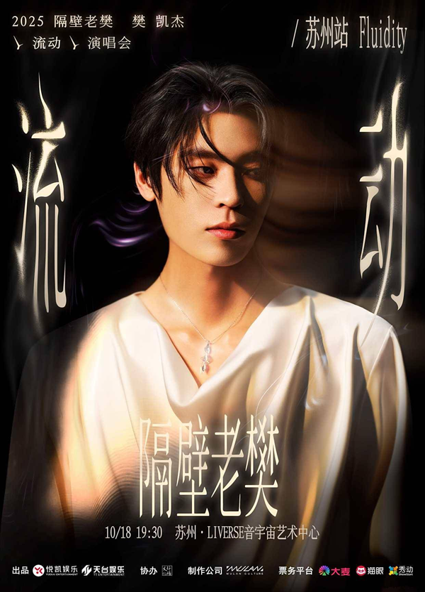 歌手樊凯杰(艺名“隔壁老樊”)“流动”演唱会苏州站门票预售已正式开启。10月18日19:30,这场演出将在苏州市 LIVERSE音宇宙(音宇宙艺术中心)上演,水韵古城与现代音乐的碰撞引发广泛关注。回顾 9月20日北京站演出,樊凯杰演唱 20首经典与新作,从《我曾》的低吟浅唱到《都会变好的》的治愈演绎,以故事感嗓音与特色舞美打造沉浸式体验,让观众感受音乐本真魅力。