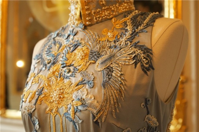 品牌创始人章亚华女士作为上海市非遗“中式女装制作技艺”代表性传承人,近二十年来不断推动海派旗袍的现代化演进。本次展出两件高定作品:一件以“七宝”为灵感,运用盘金绣、珍珠绣与水晶烫工艺,打造出极尽华美的仪式感旗袍;另一件则融合西式礼服廓形与中式手绘、贴布绣工艺,将“仙山灵鹿”的意境绘于桑蚕丝上,成就“行走的水墨画”。