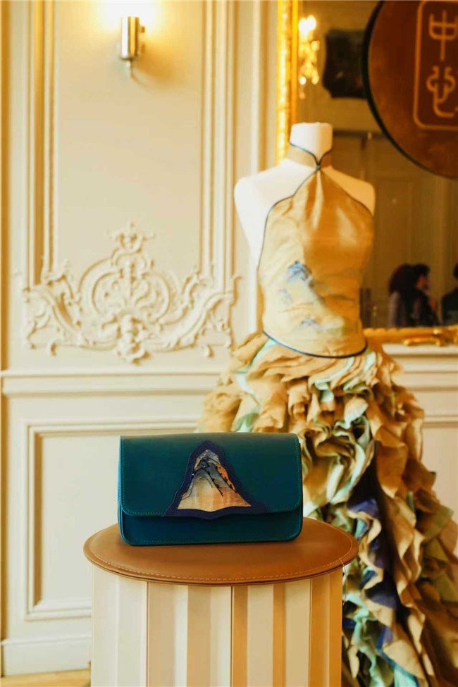 PACC(上海市公共艺术协同创新中心)联合缂丝第六代传承人王建江与设计师苗海燕,推出《千里江山翠履霓裳》系列。缂丝作为“织中之圣”,以“通经断纬”的古法,在礼服与手包上再现宋代名画《千里江山图》的恢宏气韵。每件作品需耗费数月手工织造,令法国高级定制界人士连呼“不可思议”,赞叹其“将绘画穿在身上”的艺术高度。