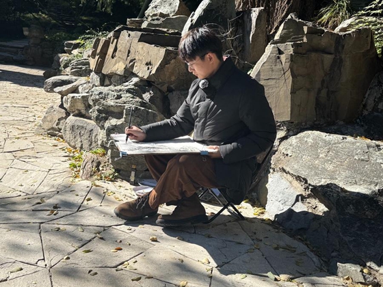 青年画家陈泽谦携笔墨赴北海公园写生之约