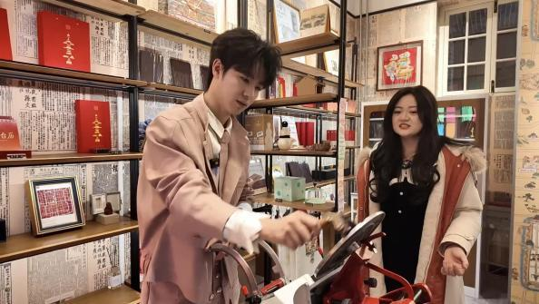 随后,他在泰安里的民国风情区域打卡,试穿民国服饰、摆弄二八单车、体验老式磨豆机与打字机,更化身“拍照博主”,分享在石榴树下、黄包车旁的创意打卡姿势,邀请观众前来实地体验,感受南北文化融合的独特氛围。还畅谈北京中轴线景点的不同气质,直言天安门的庄重肃穆让人自豪;什刹海、南锣鼓巷的烟火气息充满生活感;而泰安里的包容氛围则让人印象深刻。他呼吁更多年轻人走进北京中轴线,无论是参观古桥、聆听讲解,还是打卡特色场景、品尝美食,都能在不经意间感受历史文化的魅力。