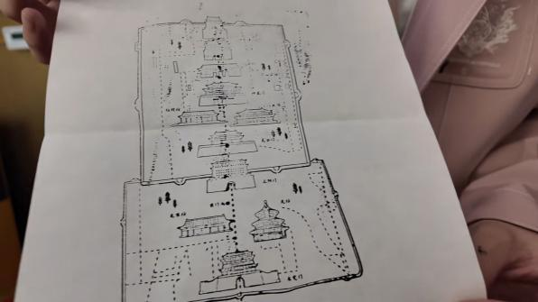 除了历史文化探秘,直播中的沉浸式体验环节极具亮点。黄誉博亲身体验北京中轴线主题拓印,在讲解员的指导下调配油墨、滚动拓印,亲手制作出古色古香的北京中轴线图案作品,过程中幽默互动不断,让传统文化体验变得生动有趣。