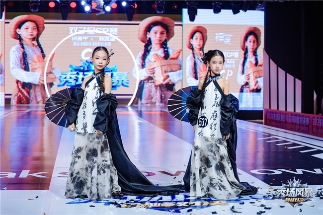 本届赛事设个人赛、双人CP赛、超模联盟组合赛三大竞技单元,全方位考察选手的综合实力。在个人赛环节,选手们首先身着统一巴布豆蓝白主题赛服登台,展现出扎实的台步功底与阳光朝气;随后换上秀场风暴独家定制的黑红潮服,以更具个性化的风格演绎,诠释了时尚表现力的多维度可能。