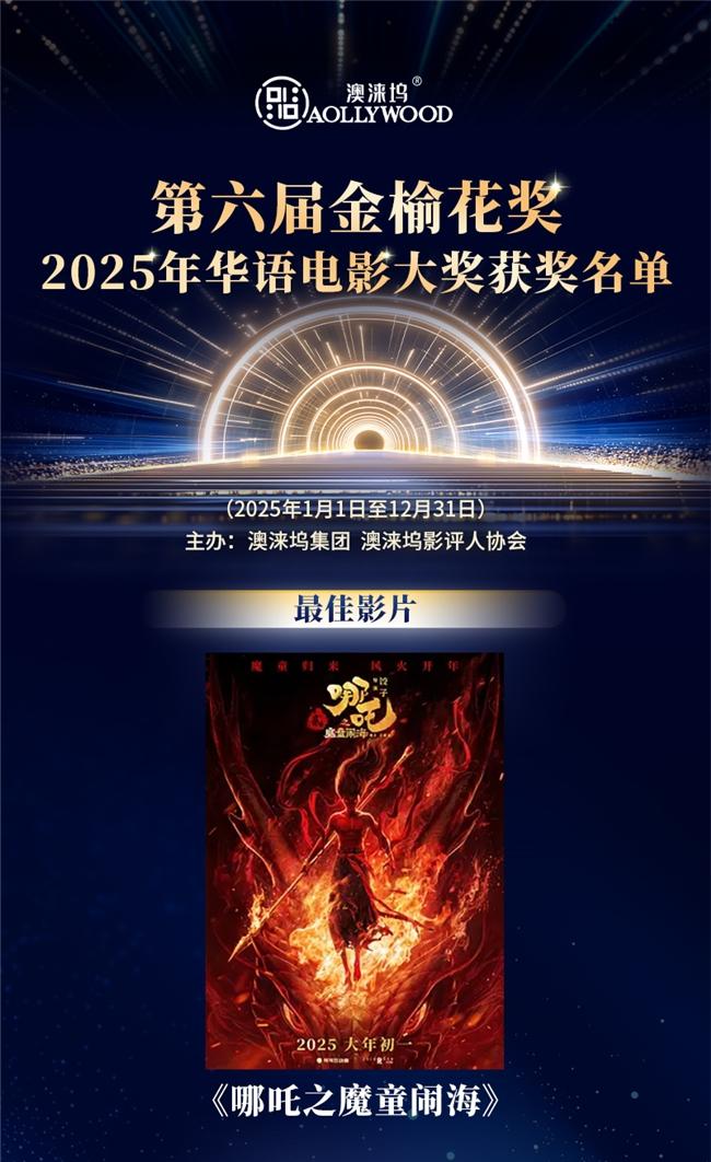 第六届金榆花奖澳门揭晓 《哪吒之魔童闹海》摘最佳影片
